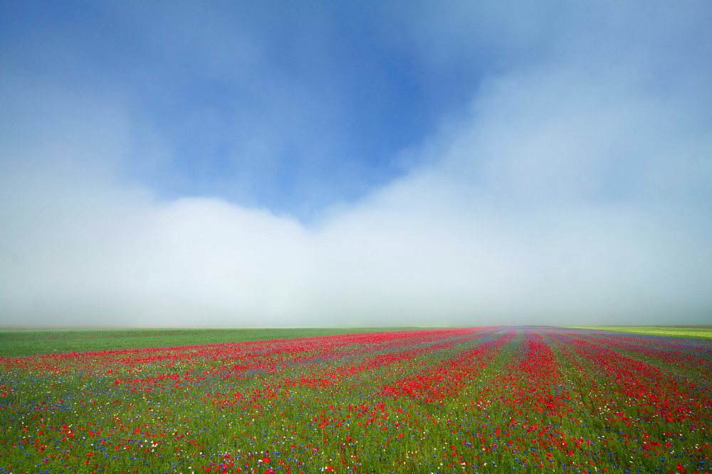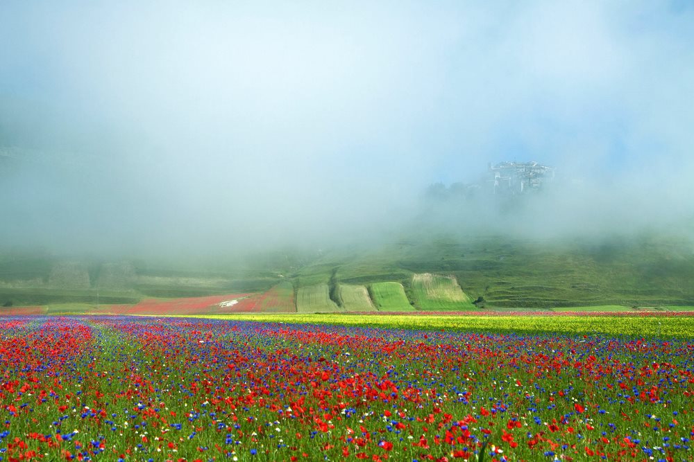Con la vasta distesa del Piano Grande, parte del Parco Nazionale dei Monti Sibillini, l'intera valle d'alta quota viene incredibilmente vissuta durante il tardo periodo maggio-giugno, quando i prati vengono spazzati dalle raffiche di vento in inverno, in primavera questi prati si vestono con il colore incredibile dei fiori selvatici, papaveri, rapastelle tale visione si estenderà a perdita d'occhio.